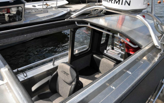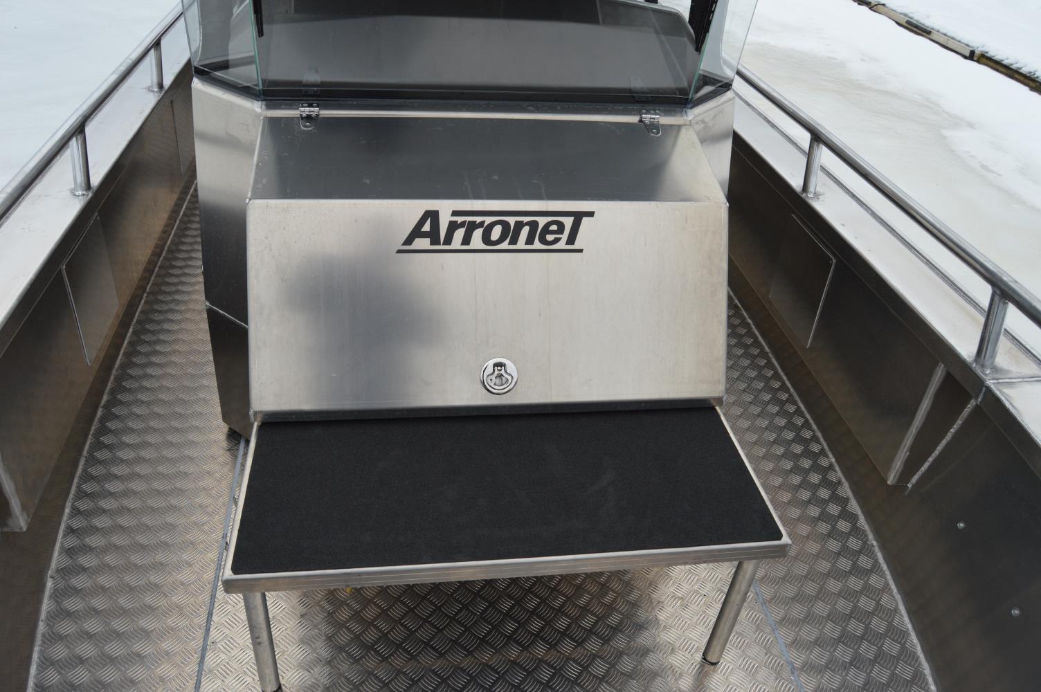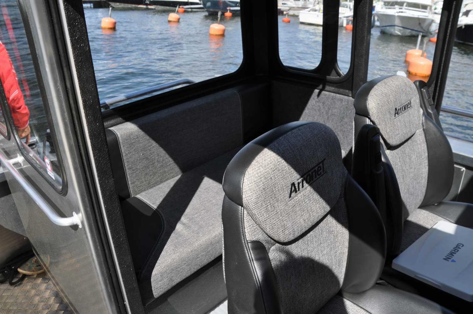 Upptäck Arronet 235 CC – en mitthyttsbåt som kombinerar robust konstruktion med exceptionell komfort och funktionalitet. Med den gummiupphängda hytten, känd som Arronet Quiet System (AQS), minskas ljudnivåer och vibrationer drastiskt. Detta ger en tyst och behaglig färd, även i hög hastighet, vilket gör att du kan samtala normalt i 30 knop.