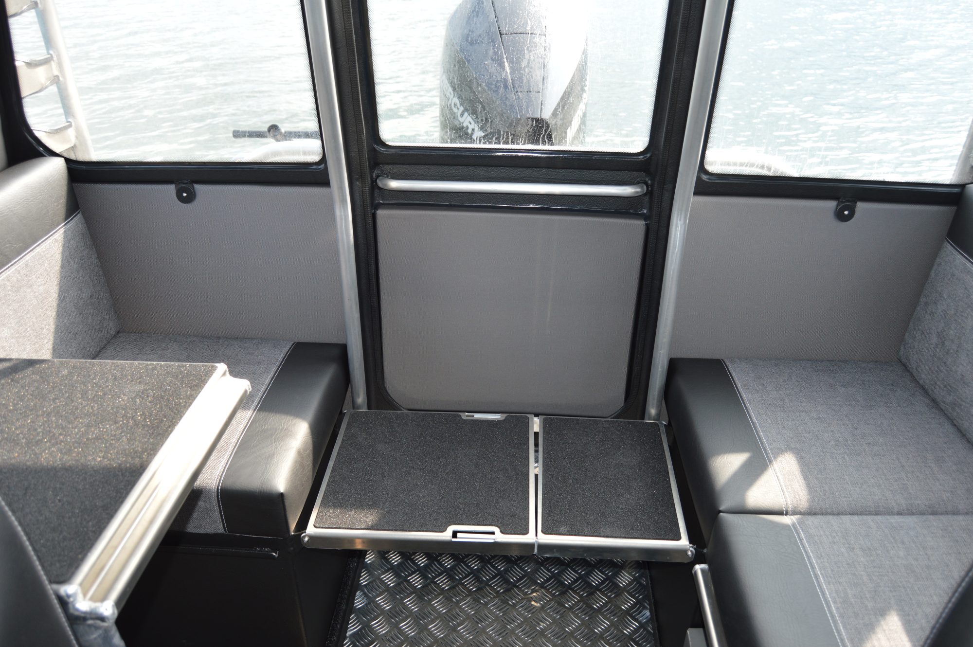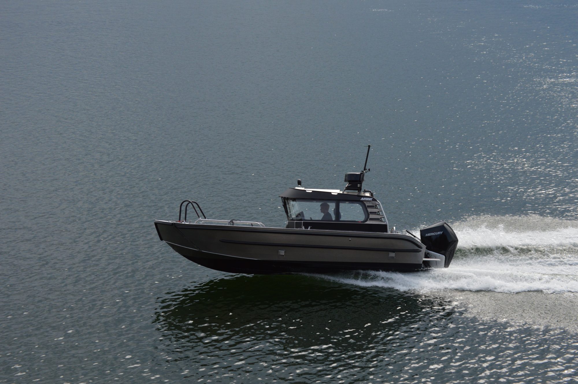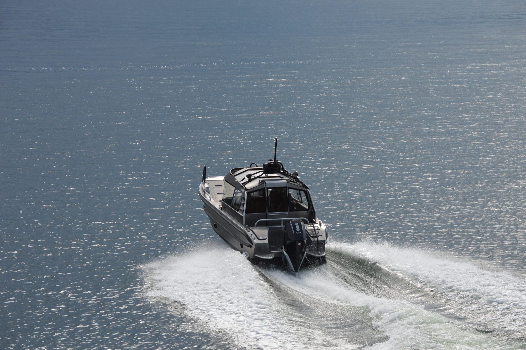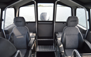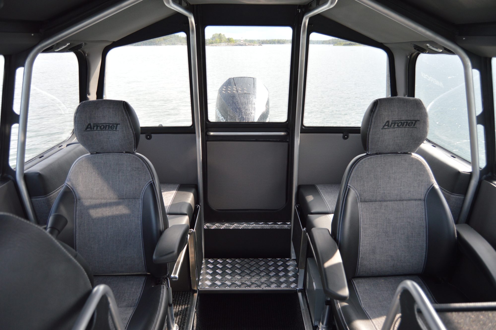 Det som verkligen gör denna modell unik är den gummiupphängda hytten – ett smart system kallat AQS – Arronet Quiet System. Det innebär att du färdas tyst, utan störande motorljud eller vibrationer, vilket ger en helt ny nivå av komfort till sjöss. Perfekt för långa arbetsdagar eller långa turer där du vill fokusera på upplevelsen, inte oljudet.